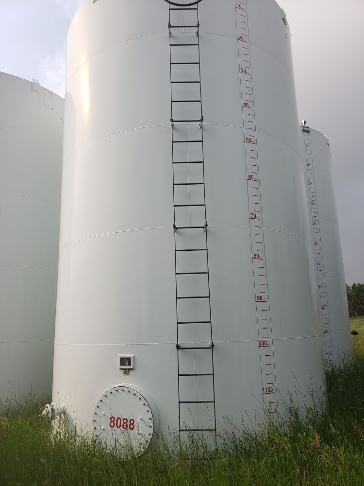 31500 Gallon (750 BBL) Vertical Carbon Steel Tanks 15.5'D X 24'H Barley used, like new built 2012 5 Available Drawings available Location: Coronation, AB
