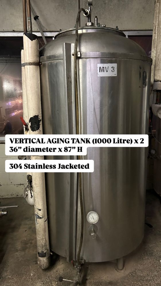 1000L (264G) Aging Tank Jacketed Stainless Steel 36"D X 87"H 2 Available Location: Southwestern Ontario
