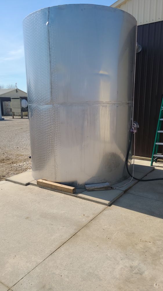2500L (660 Gal) Stainless Steel Vertical Dimpled Jacketed Tanks 55"D X 110"H (from top of the tank, with lid closed, to the floor) 2X Available Top opening latch Side opening latch Downward sloping bottom Location: Markham, ON